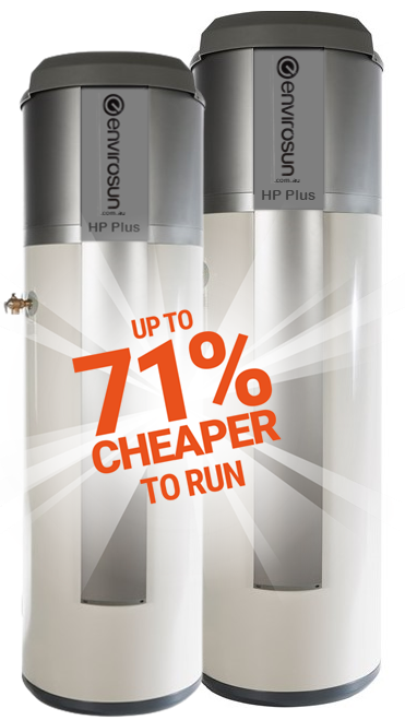 A Envirosun HP Plus heat pump will save you around 70% on your hot water heating costs compared to a standard electric hot water system.